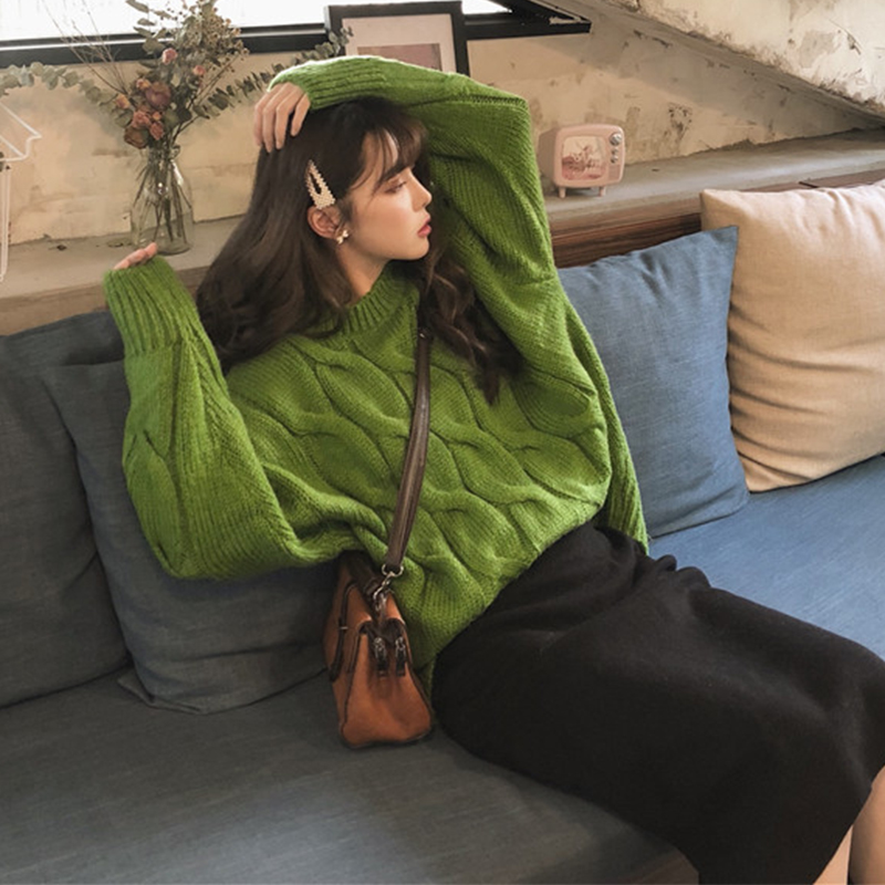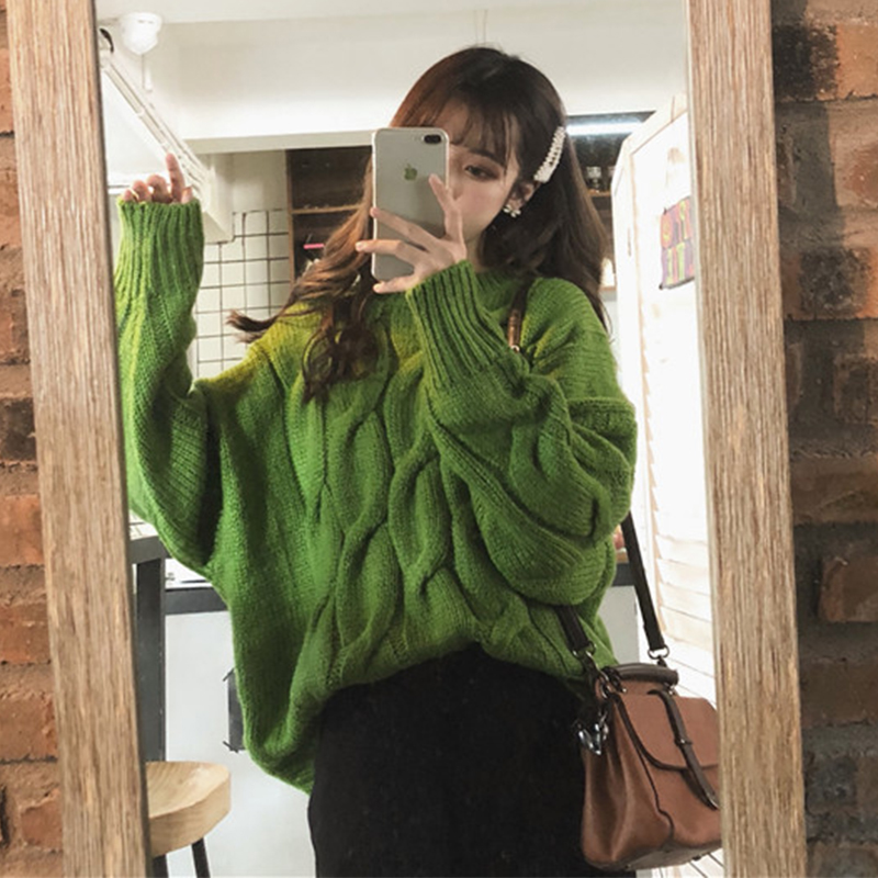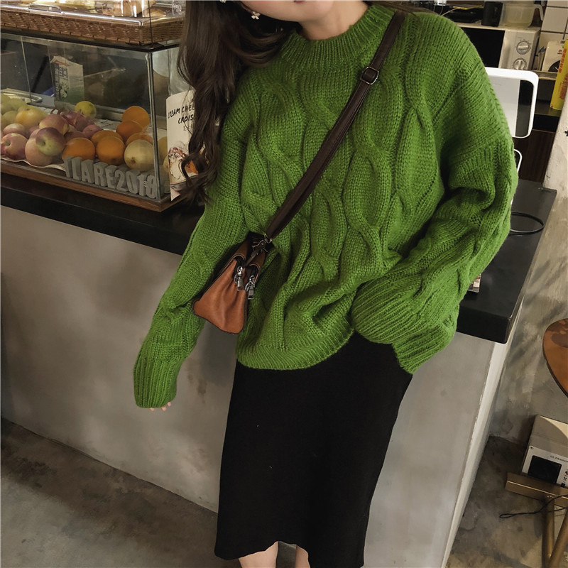 慵懶風麻花套頭毛衣外套女秋冬裝2018新款韓版百搭寬松長袖針織衫