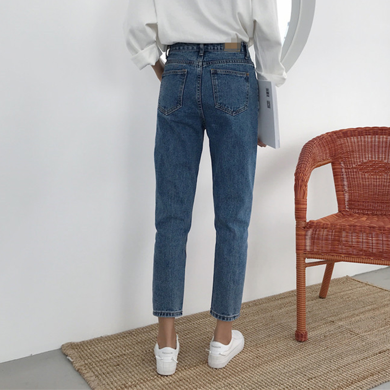 / 怪味少女褲秋冬裝2018新款高腰復古牛仔褲學生寬松顯瘦九分哈倫褲