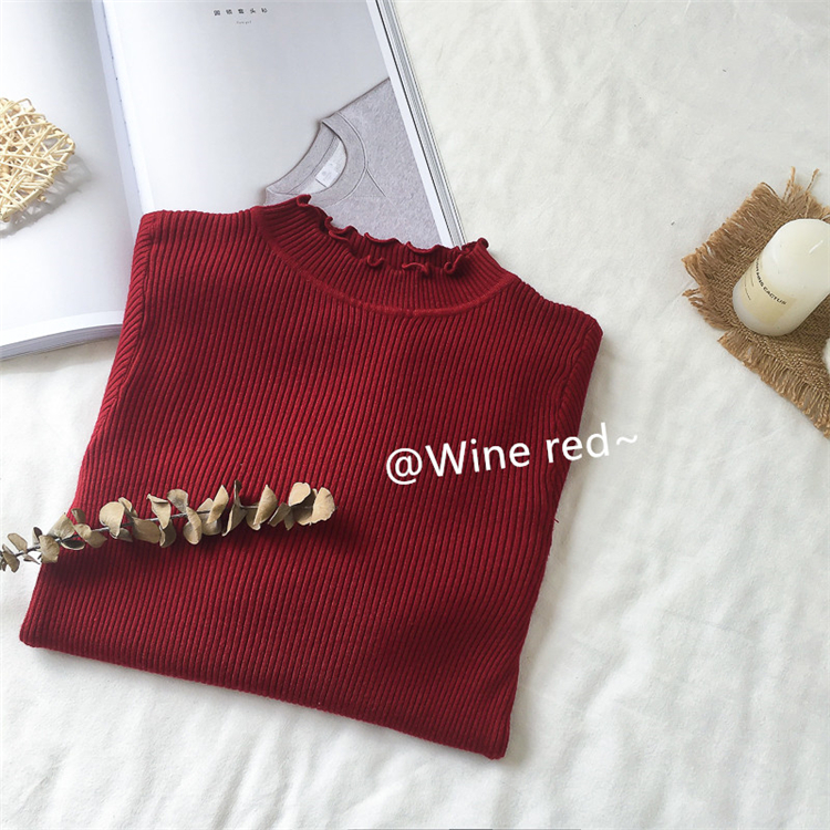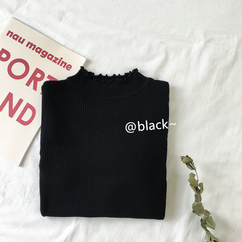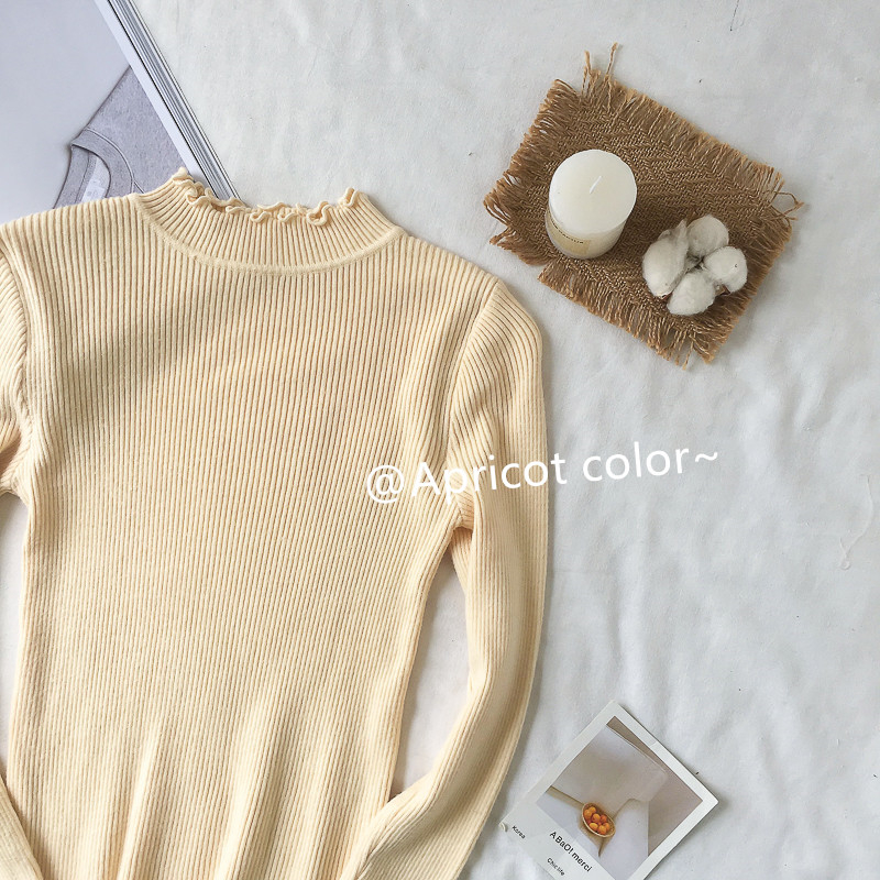 木耳邊針織衫女秋冬裝2018新款韓版氣質修身顯瘦長袖打底薄毛衣潮