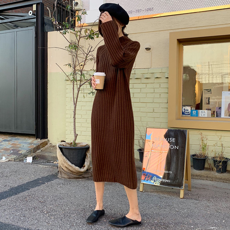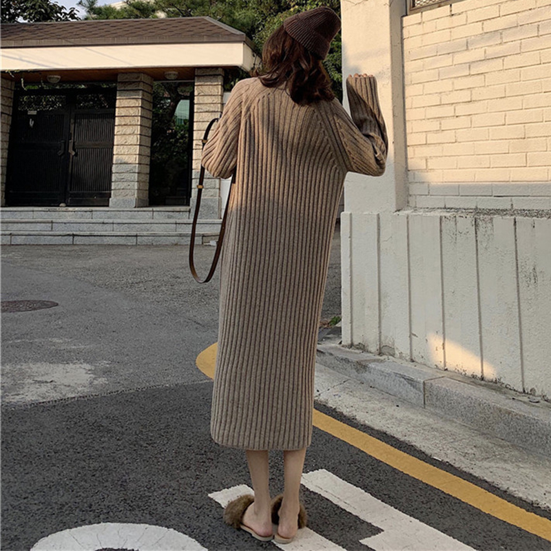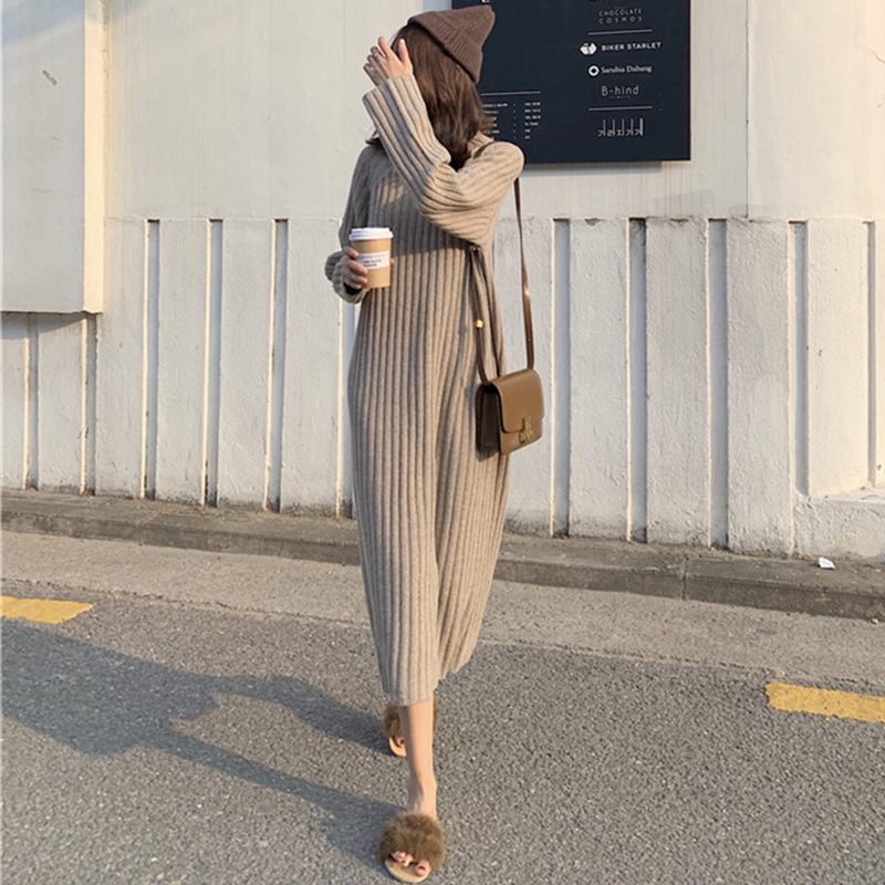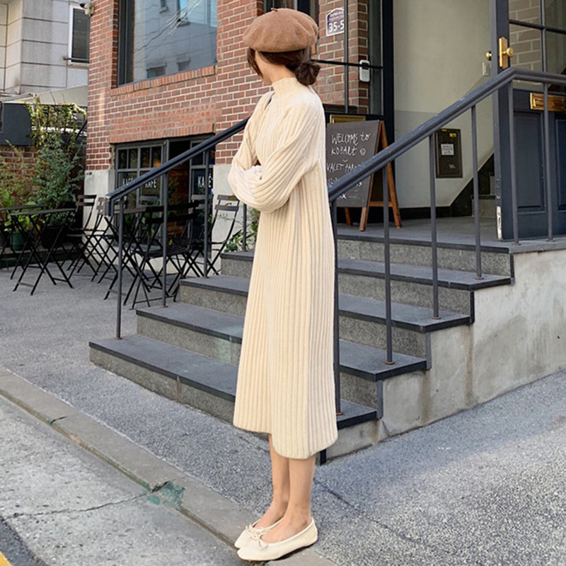 / 小高領寬松顯瘦egg風連衣裙子女秋冬裝新款氣質中長款針織毛衣裙