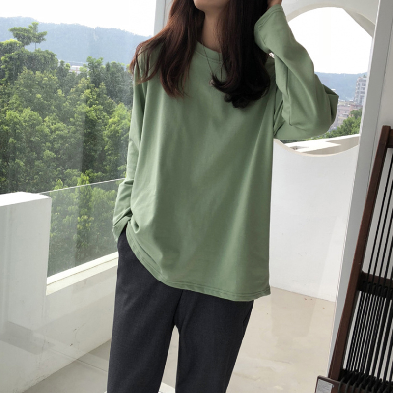 / 內搭打底衫秋裝女2018新款學生百搭長袖寬松顯瘦純色圓領T恤上衣