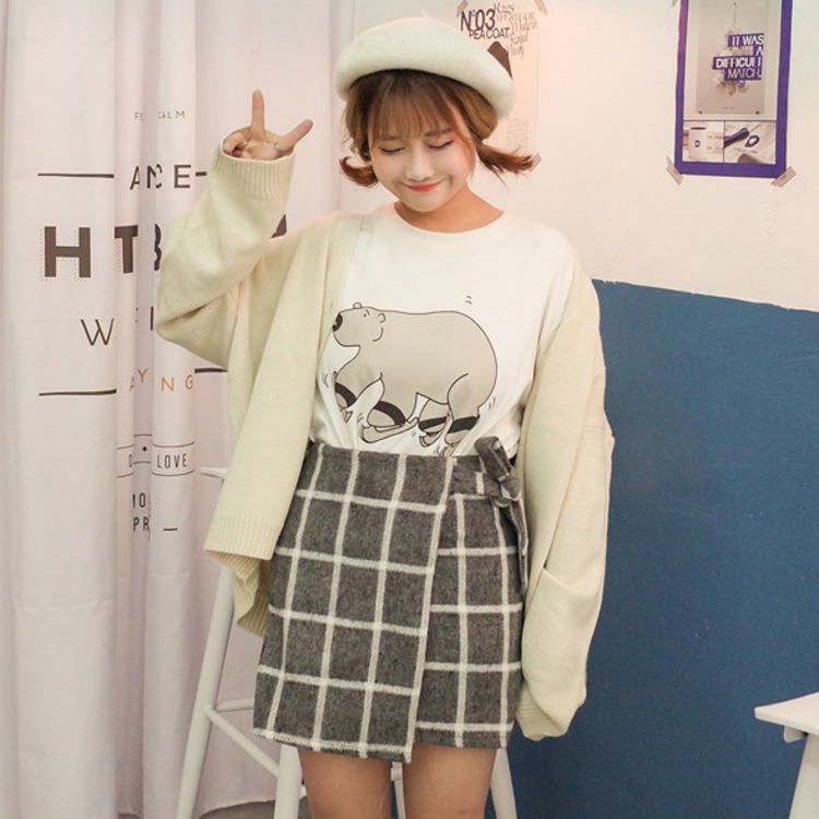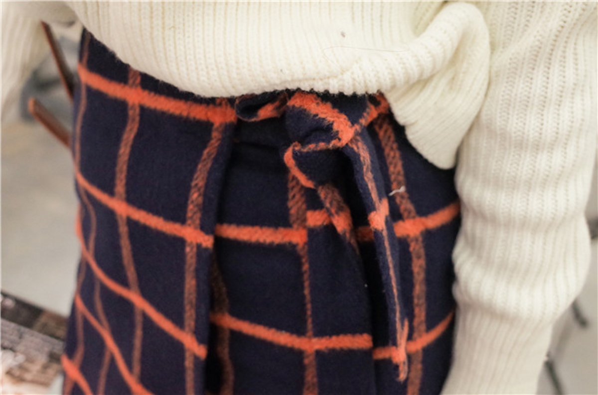 / 韓國學院風秋冬高腰顯瘦百搭格子毛呢A字裙半身裙包臀短裙女