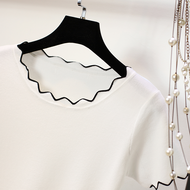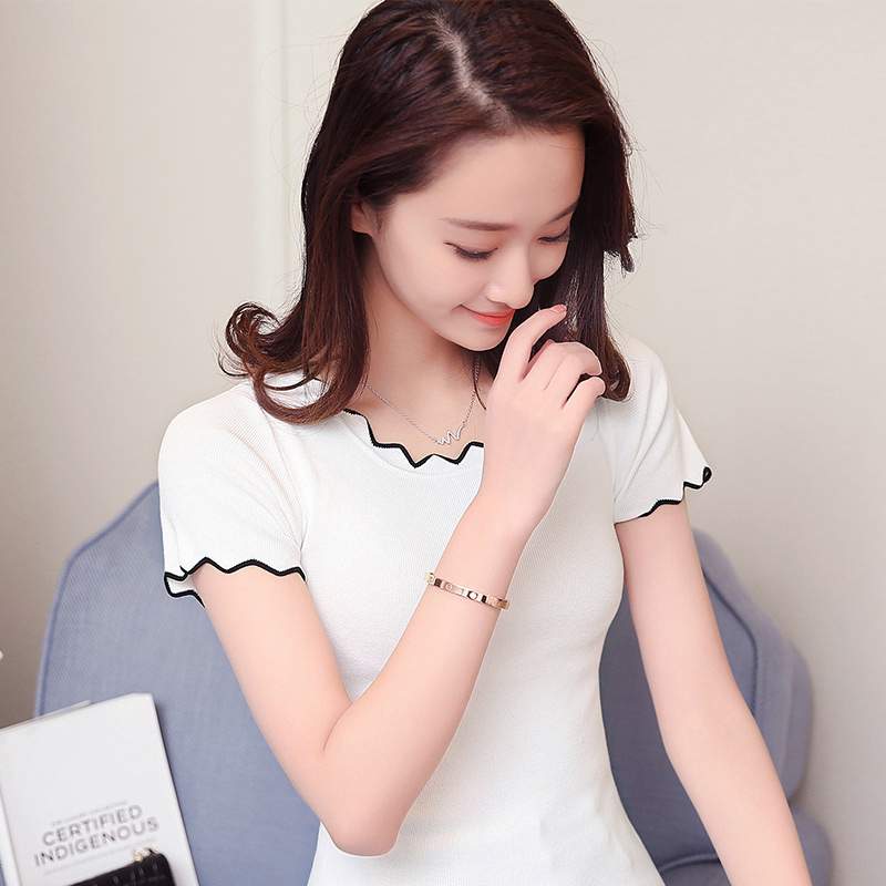 白色t恤女短袖韓版修身短款針織上衣女夏新款薄款百搭打底衫