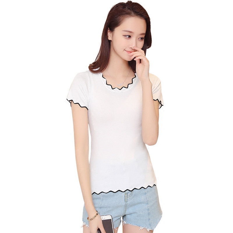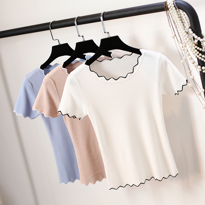 / 白色t恤女短袖韓版修身短款針織上衣女夏新款薄款百搭打底衫