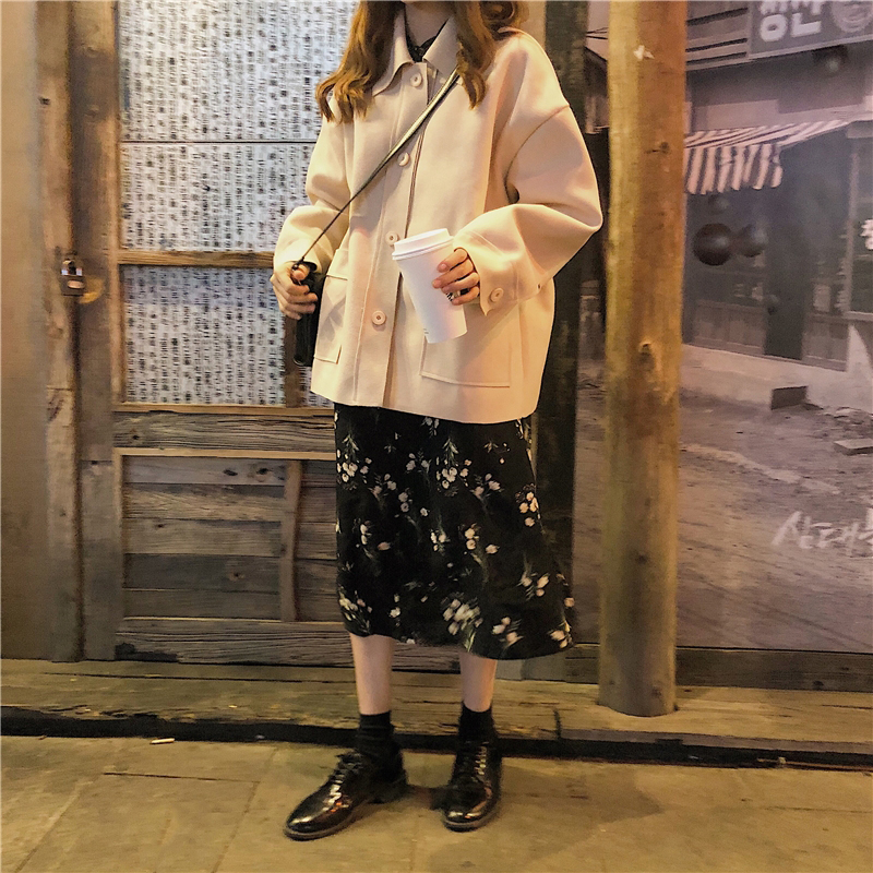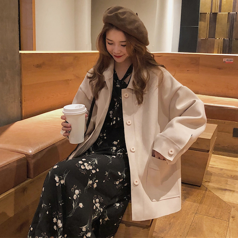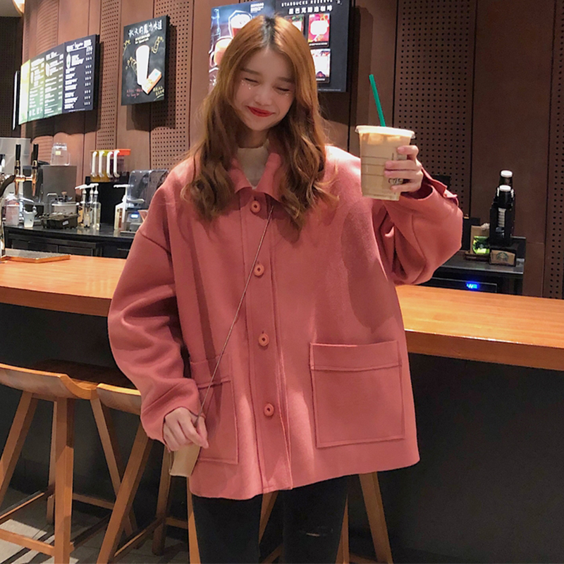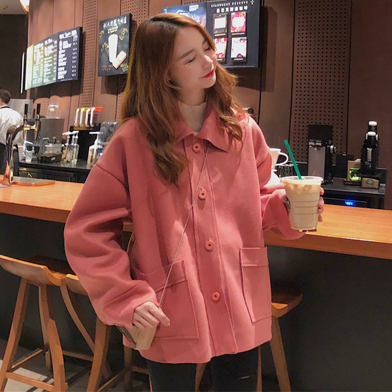 2018流行呢子大衣女秋冬裝新款韓版寬松翻領單排扣長袖毛呢外套潮