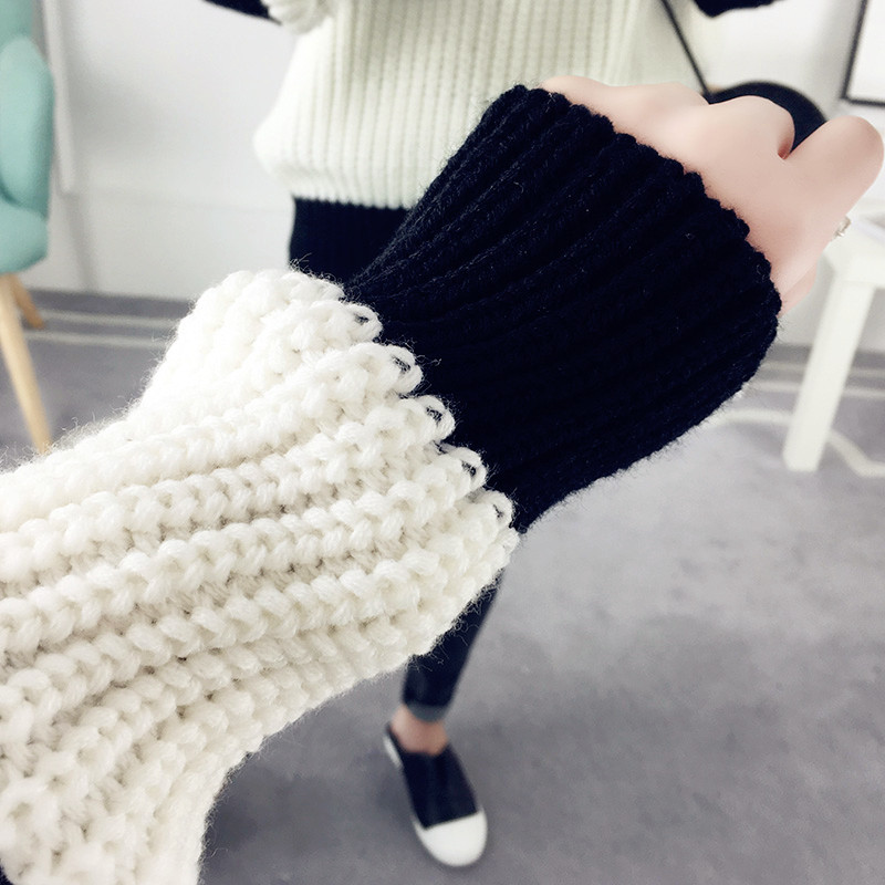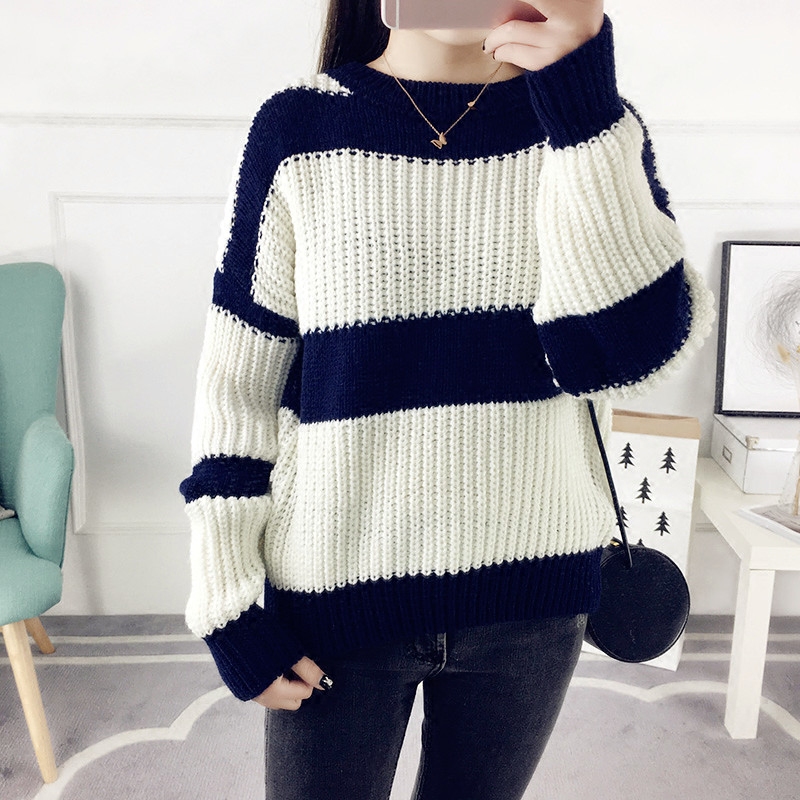 / 秋冬套頭毛衣女寬松韓版粗毛線衣條紋針織衫長袖女裝新款打底衫潮