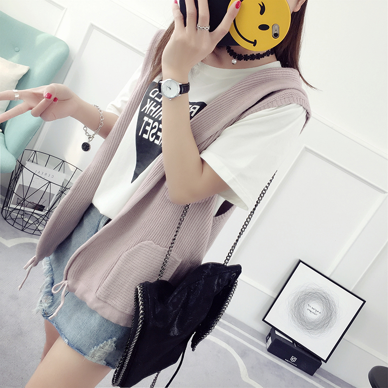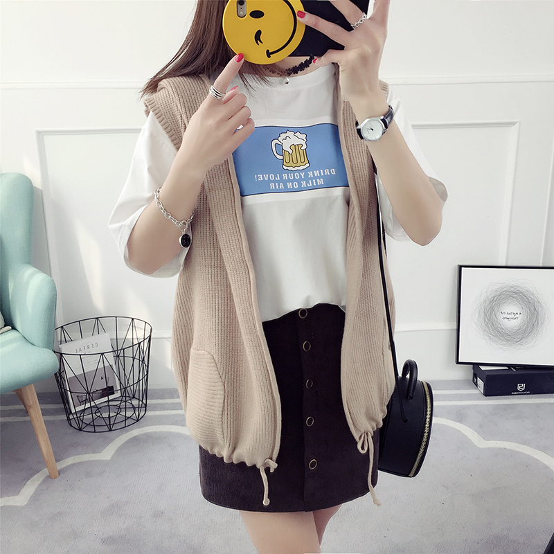 / 連帽馬甲女春秋中長款韓版新款毛線背心針織百搭韓版寬松外套