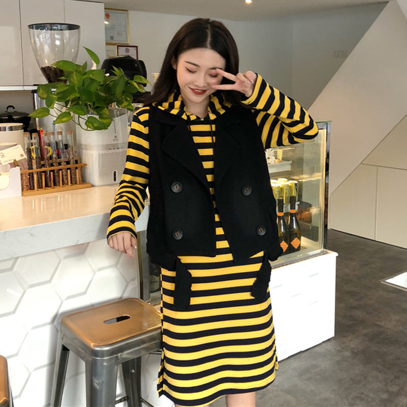 黑色馬甲|白條打底|咖條打底|黃條打底