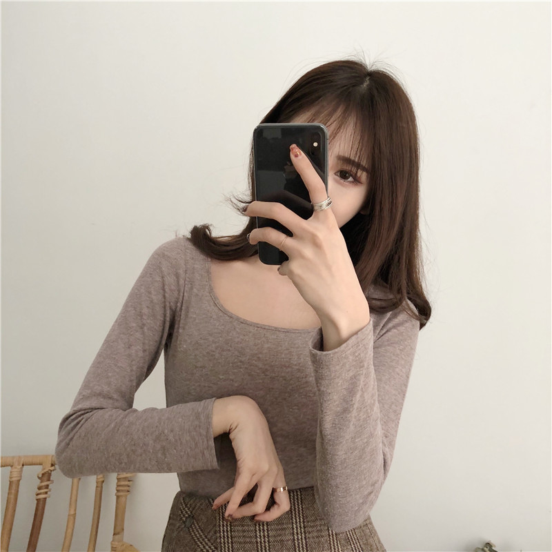 秋裝女2018新款基礎打底衫韓版修身顯瘦純色簡約長袖半高領T恤衫