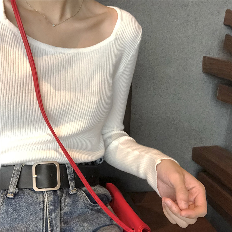 復古慵懶風套頭毛衣女2018新款秋加厚包芯紗氣質方領針織打底上衣
