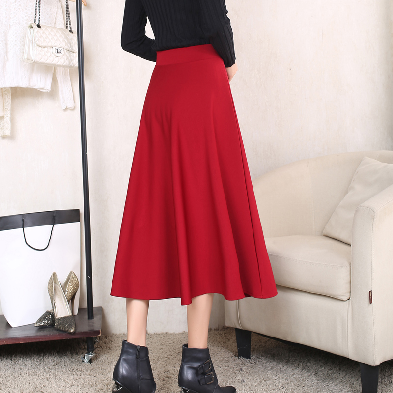 / 秋冬款中長款高腰半身裙蓬蓬裙a字中裙子彈力傘裙大碼長裙