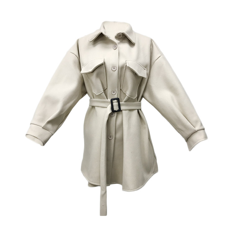 外套女春秋2018新款時尚chic簡約寬松顯瘦中長款呢子外套女配腰帶