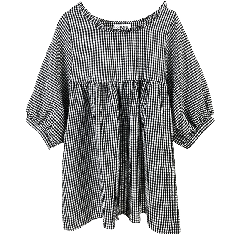 / 早春新款女裝復古學院風寬松顯瘦軟妹格子寬松顯瘦學生娃娃連衣裙