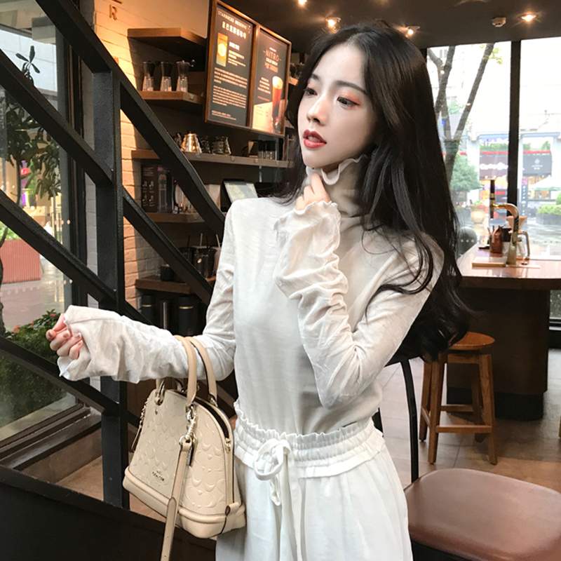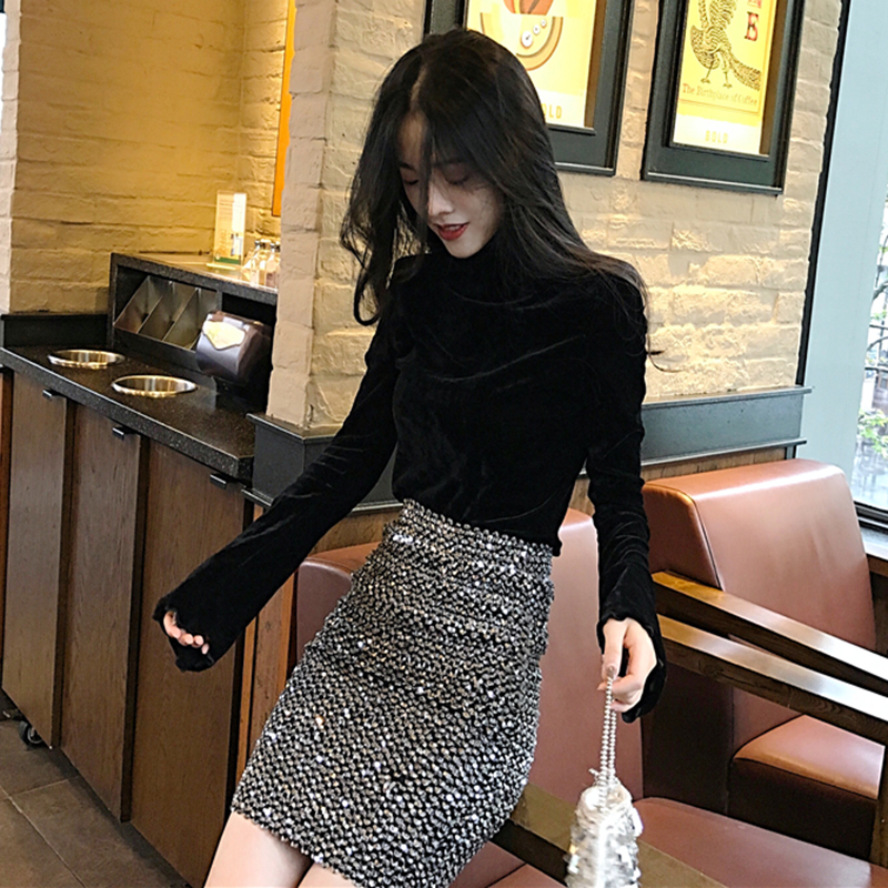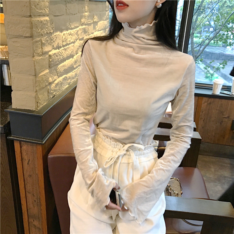 / 冷系女裝高領絲絨長袖衣服秋裝女新款修身黑色打底衫氣質T恤上衣