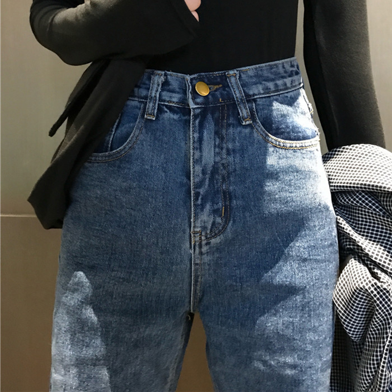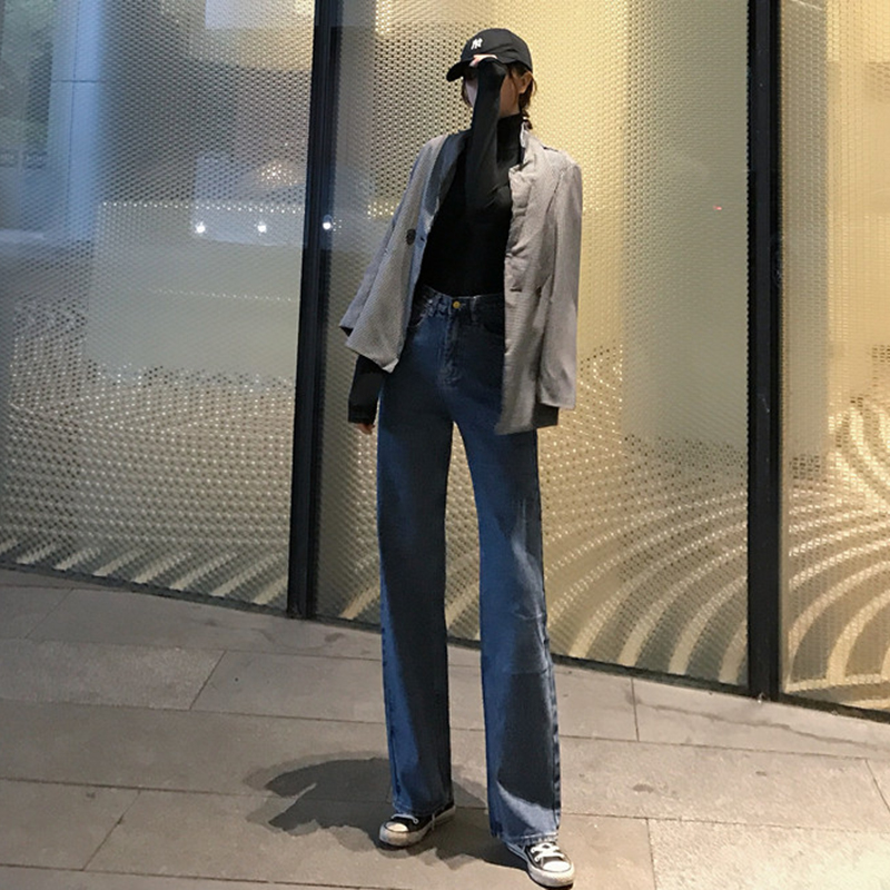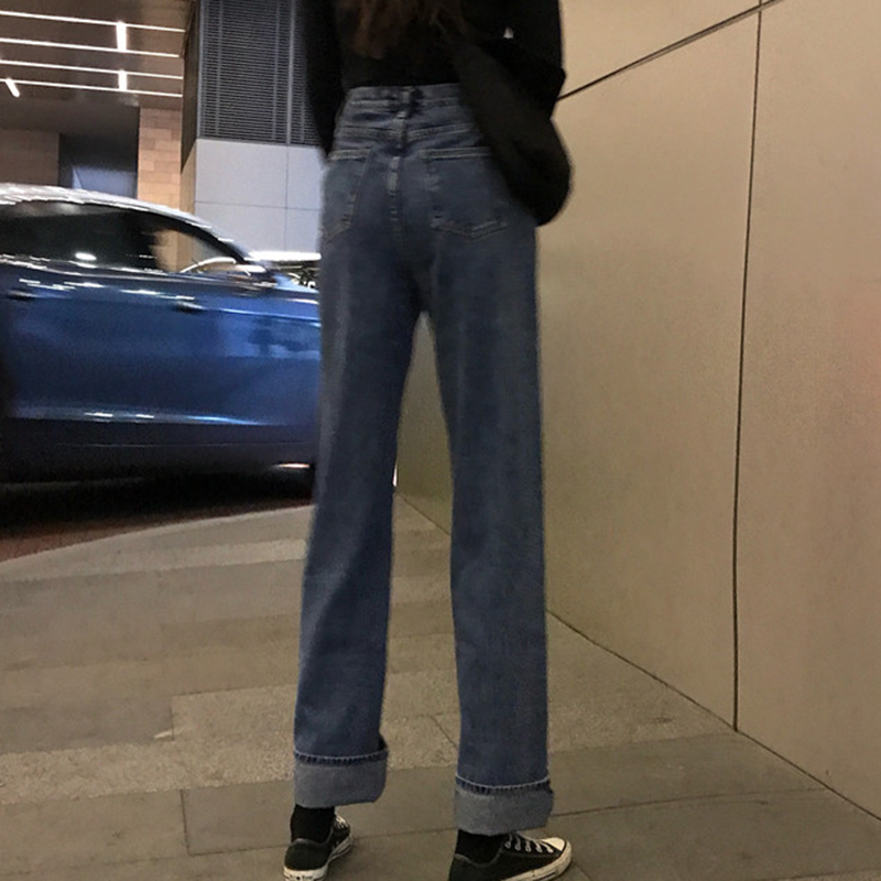 秋冬女裝2018新款復古高腰顯瘦初戀牛仔長褲直筒寬松休閑闊腿褲子