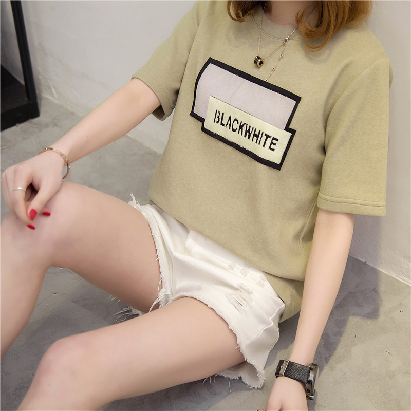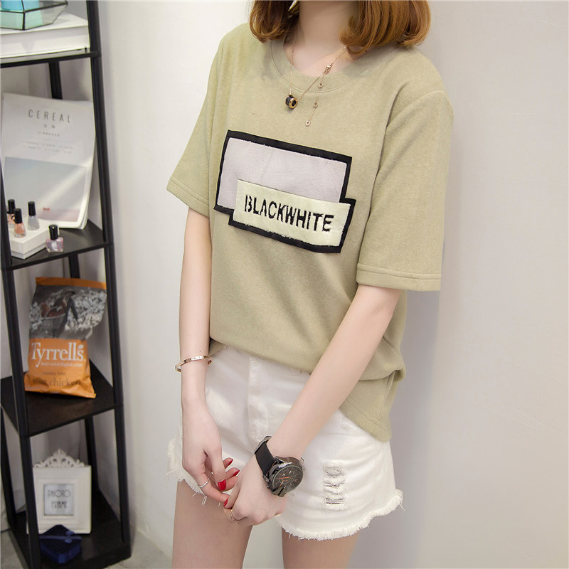 / 短袖上衣女夏新款潮女裝韓版寬松貼布百搭打底衫女春t恤小衫