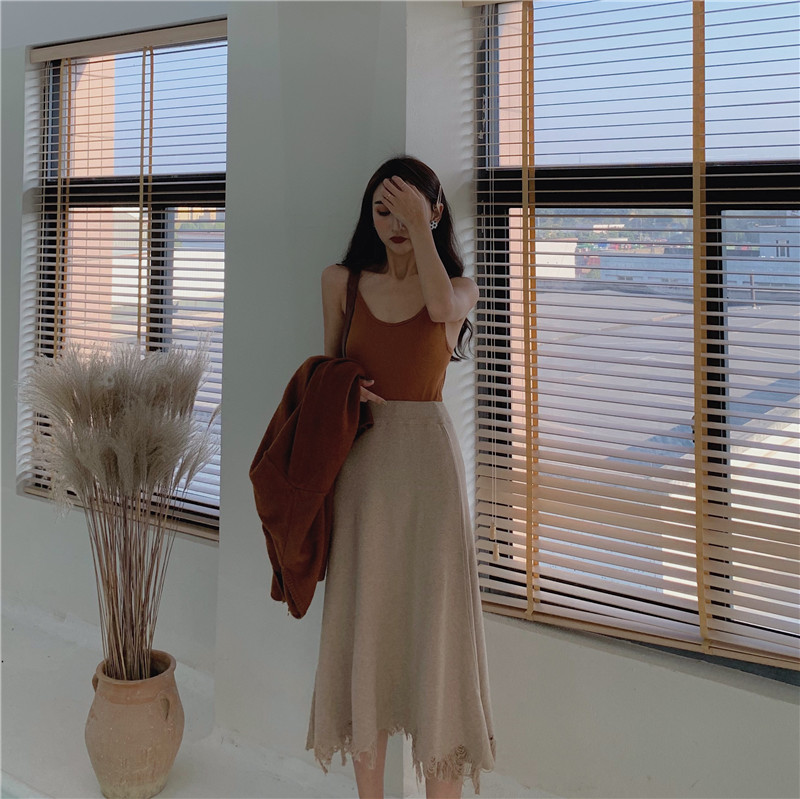 韓版女秋裝2018新款裙子氣質高腰A字傘裙工藝大裙擺針織半身裙潮