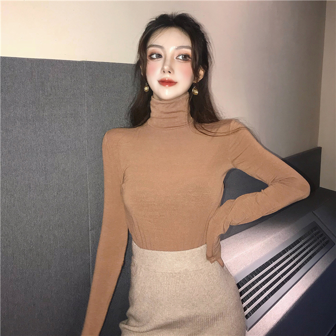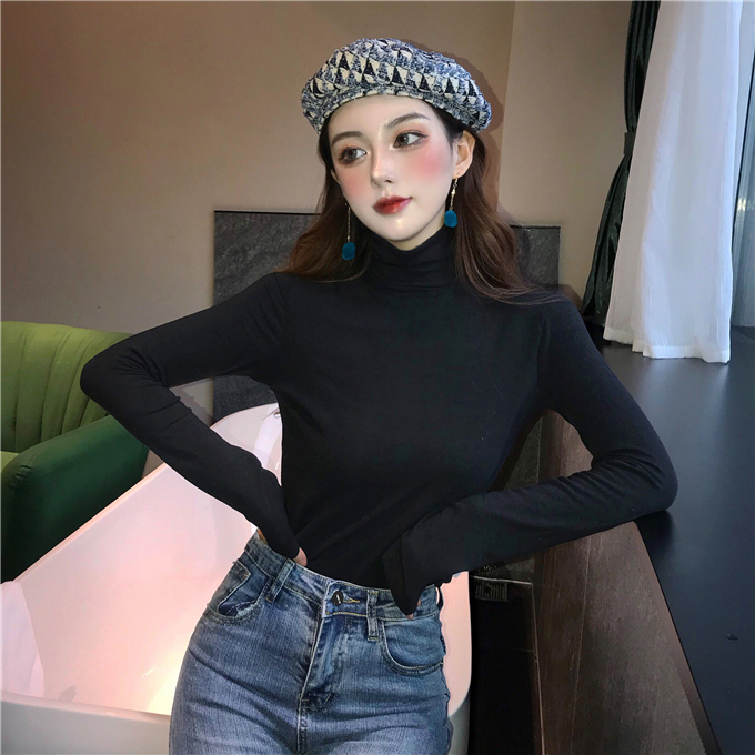 10色入韓版基礎百搭款堆堆領高領秋天上衣女潮百搭長袖T恤打底衫