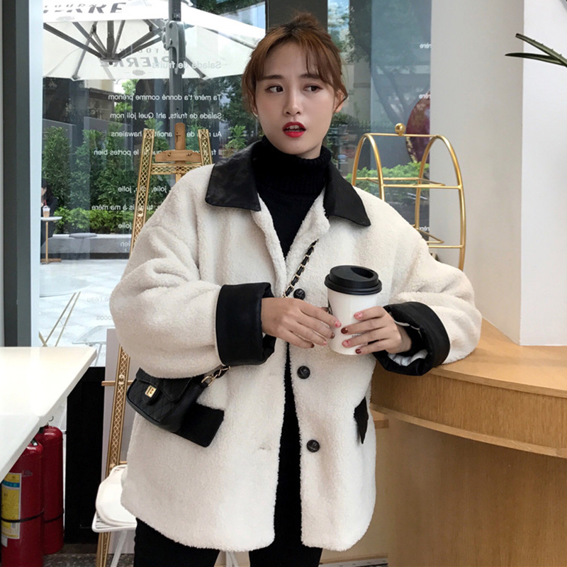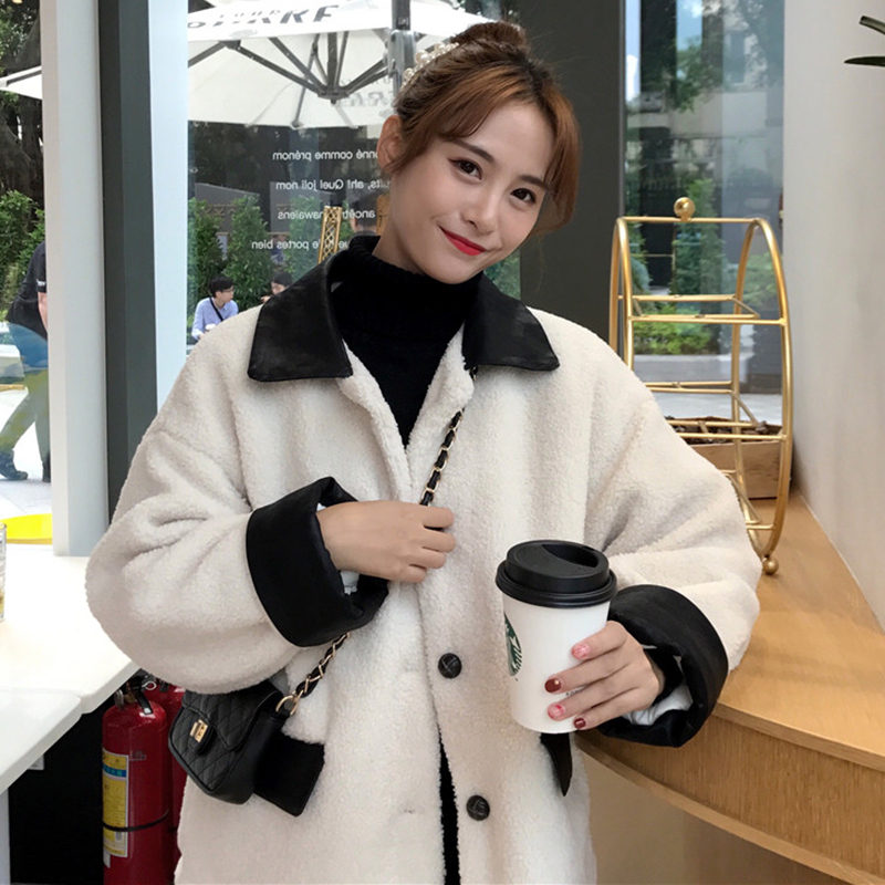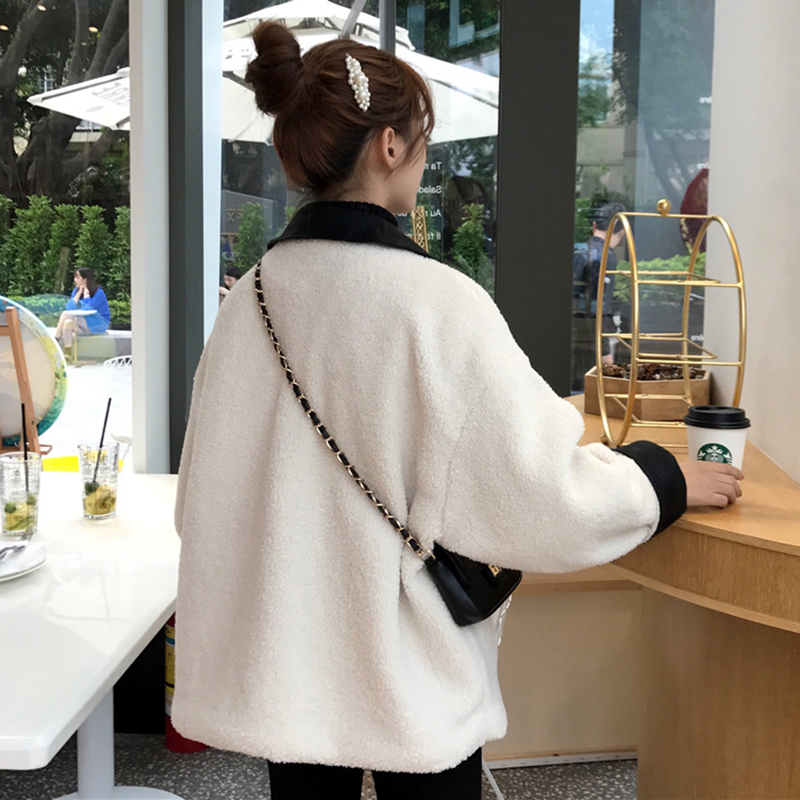 / 學院風仿羊羔毛保暖外套女冬裝2018新款韓版時尚翻領寬松長袖開衫