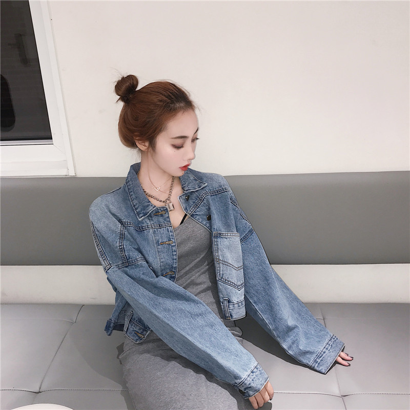 港味時尚復古秋裝女2018新款百搭長袖牛仔外套女修身顯瘦短款夾克