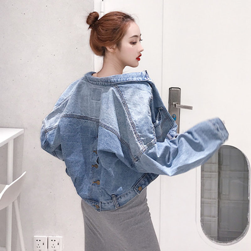 港風怪味少女短款長袖顯瘦牛仔外套女春秋時尚百搭韓版牛仔衣夾克