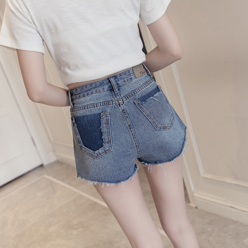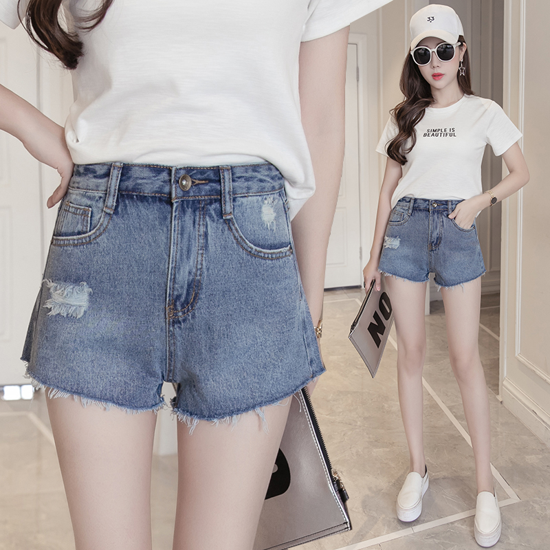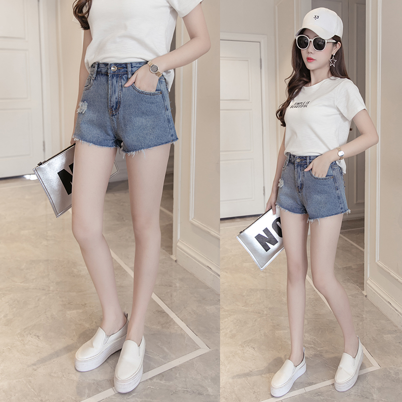 / 春夏季高腰牛仔短褲女簡約韓版復古百搭顯瘦做舊淺色熱褲潮