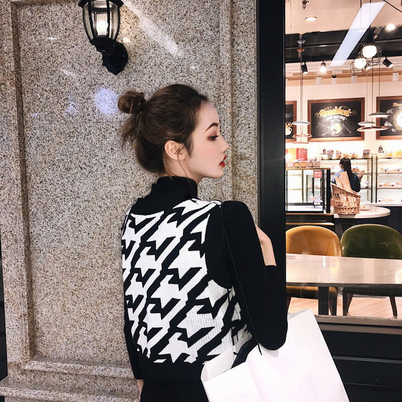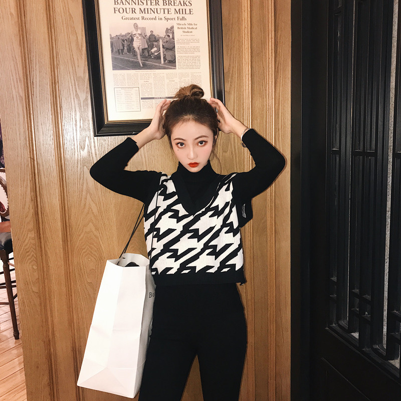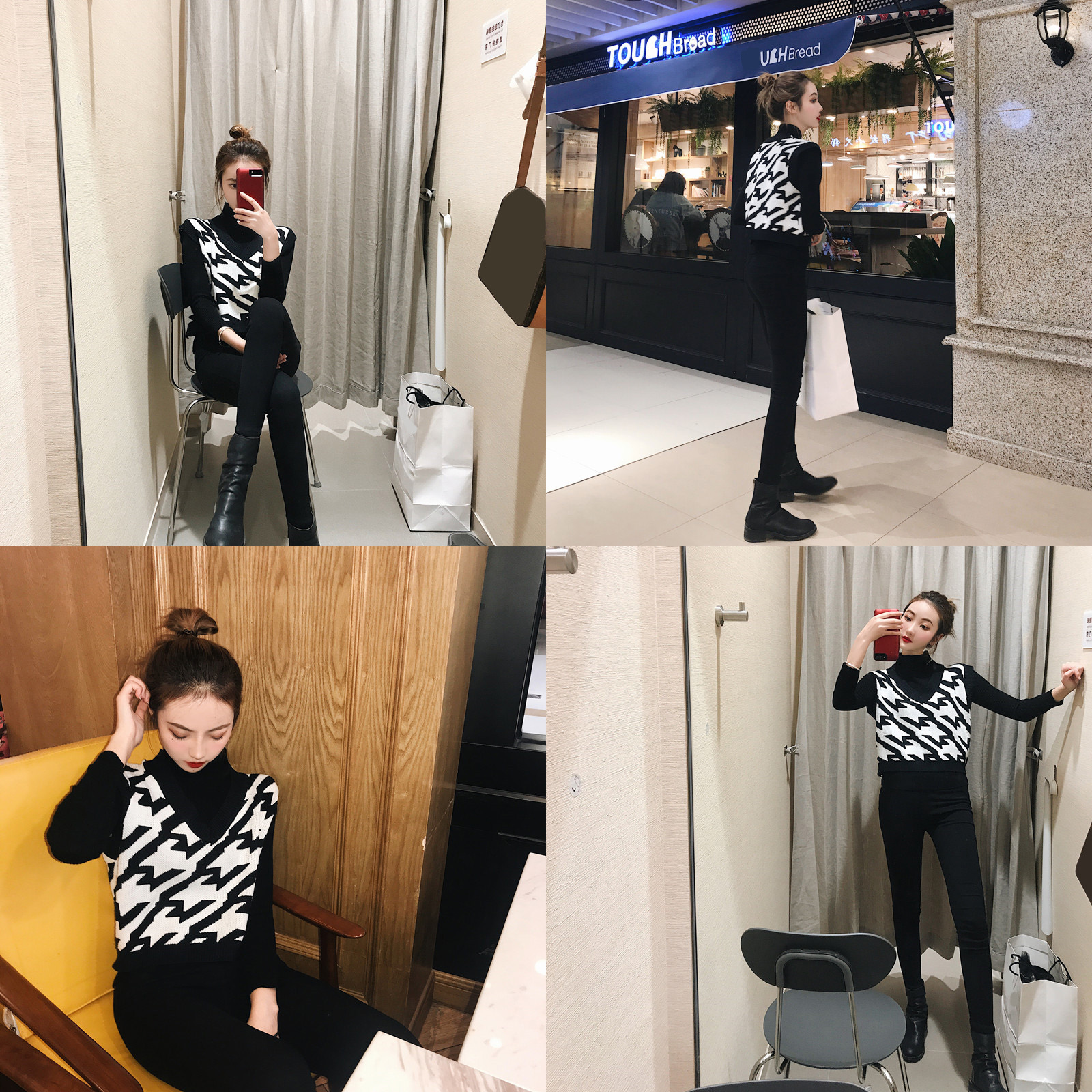 秋冬新款韓版時尚套裝針織馬甲打底衫加絨小腳外穿打底褲三件套女