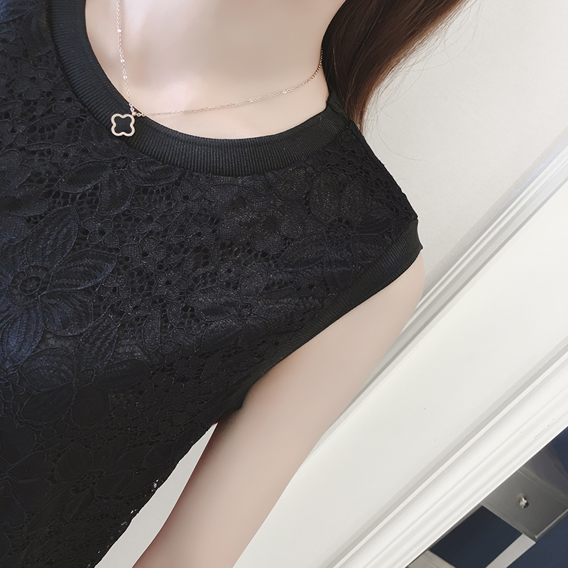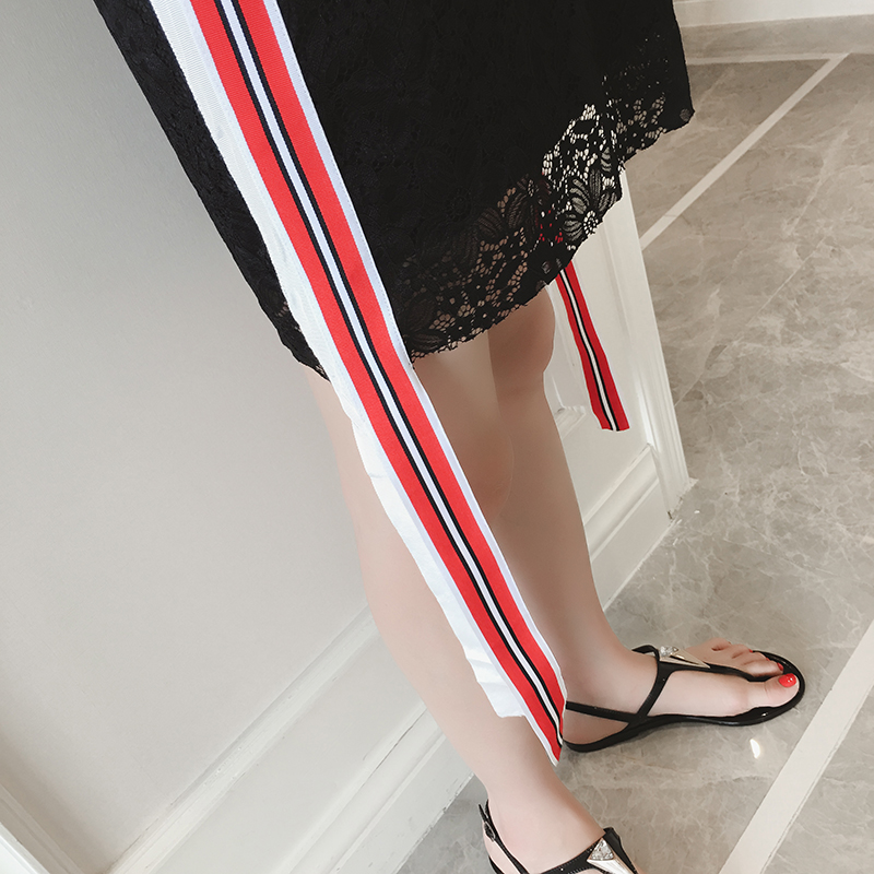 夏季新款女裝韓版時尚織帶裙子中長款顯瘦無袖蕾絲連衣裙女夏