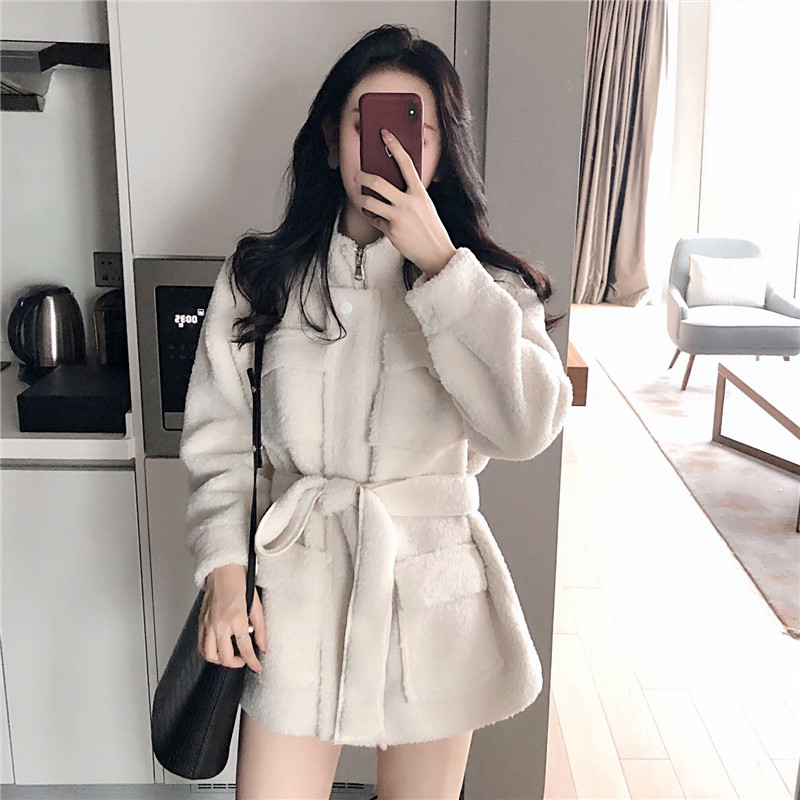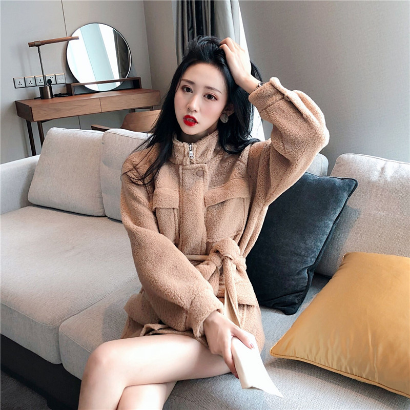 毛呢外套女冬季大衣新款2018韓版立領拉鏈收腰顯瘦百搭羊羔毛上衣