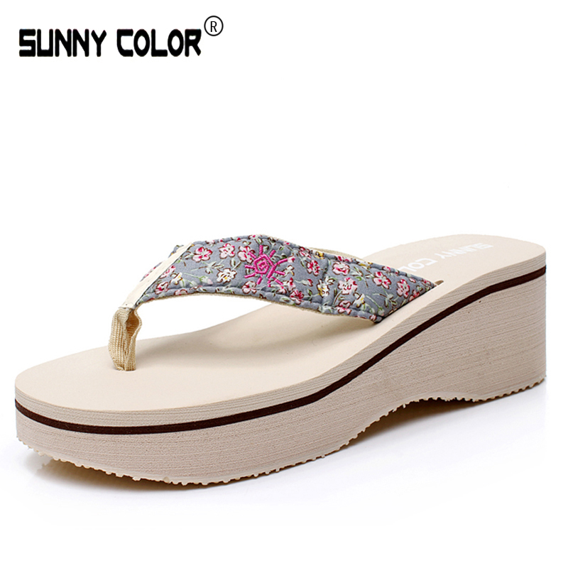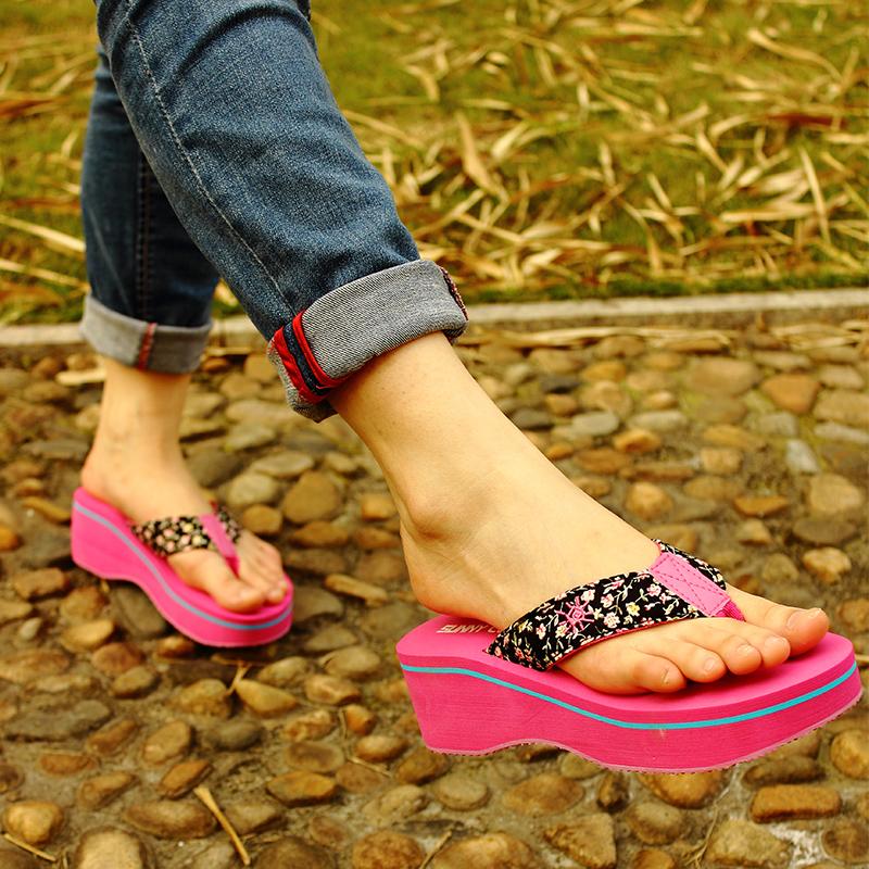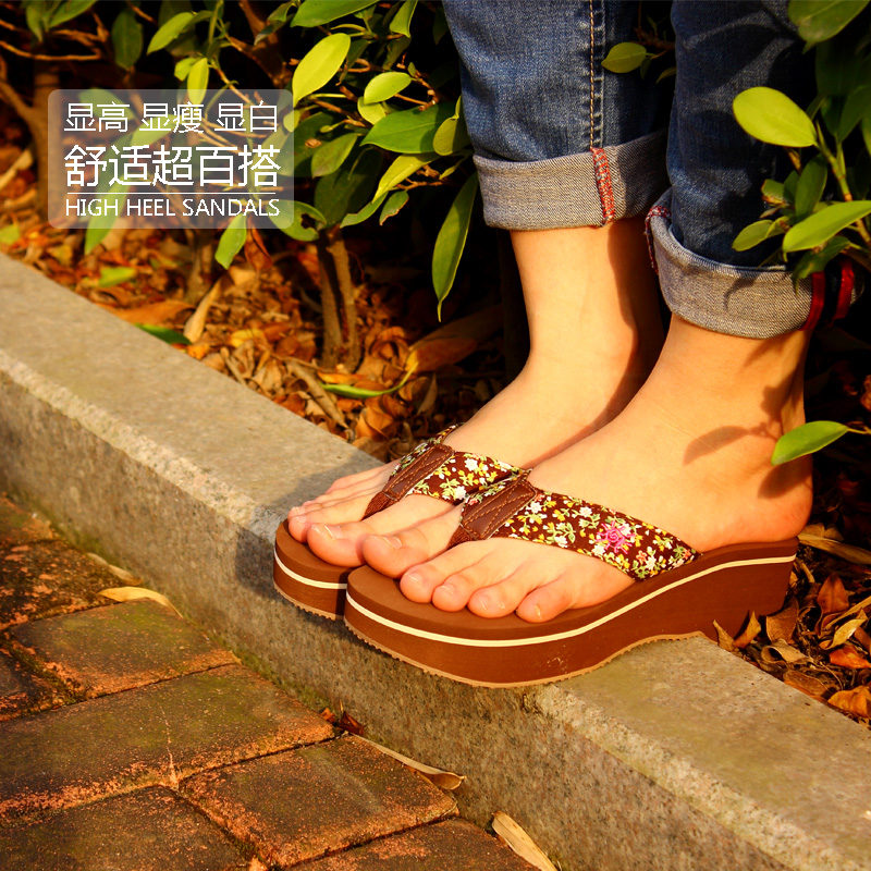 / 夏季厚底松糕坡跟人字拖女休閑防滑沙灘鞋高跟涼拖鞋