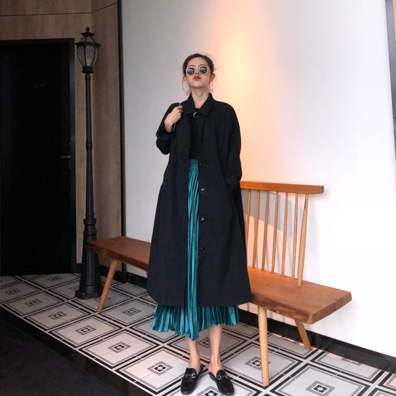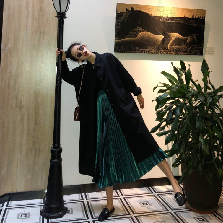 秋裝女2018新款套裝時尚兩件套中長款港風復古外套風衣+百褶裙潮