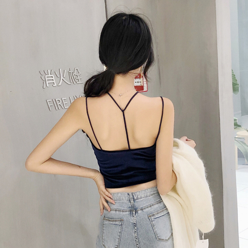 / 復古絲絨背心秋裝女2018新款純色露背掛脖吊帶胸前交叉氣質短上衣
