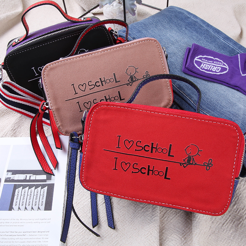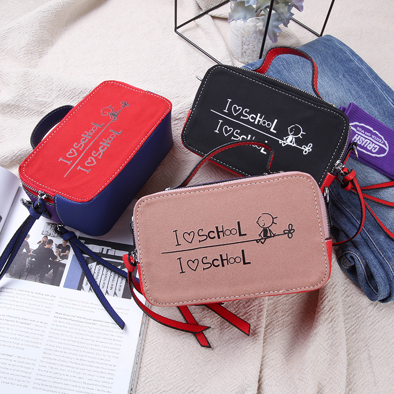 / MG小象2018新款撞色字母包包女時尚單肩斜挎小方包韓版迷你手提包