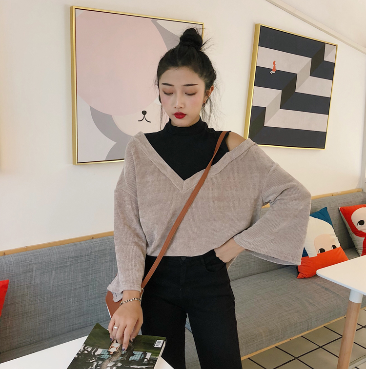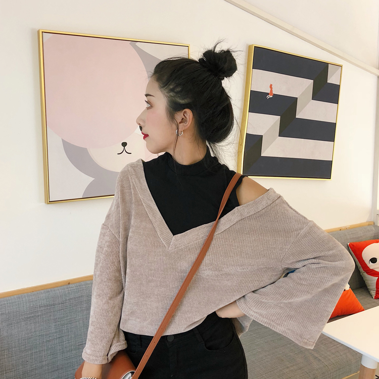 2018新款復古韓風小高領假兩件氣質百搭T恤拼色時尚寬松顯瘦上衣