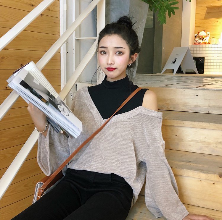 / 2018新款復古韓風小高領假兩件氣質百搭T恤拼色時尚寬松顯瘦上衣