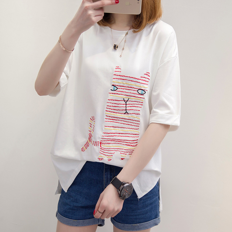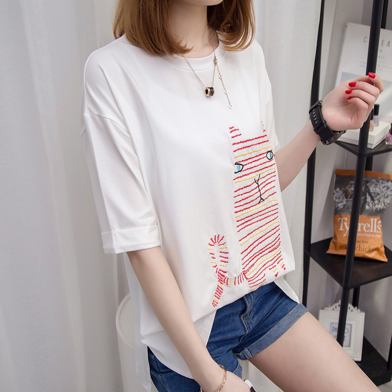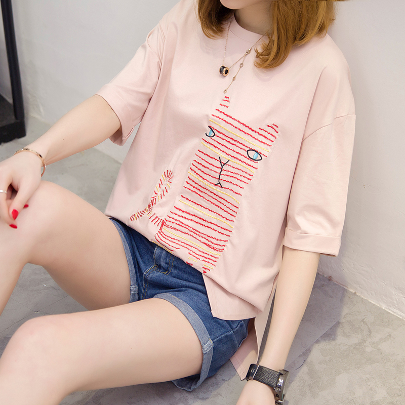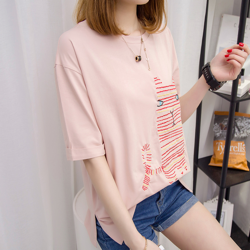 短袖t恤女春裝新款寬松五分袖中袖上衣女裝打底衫女上衣夏裝