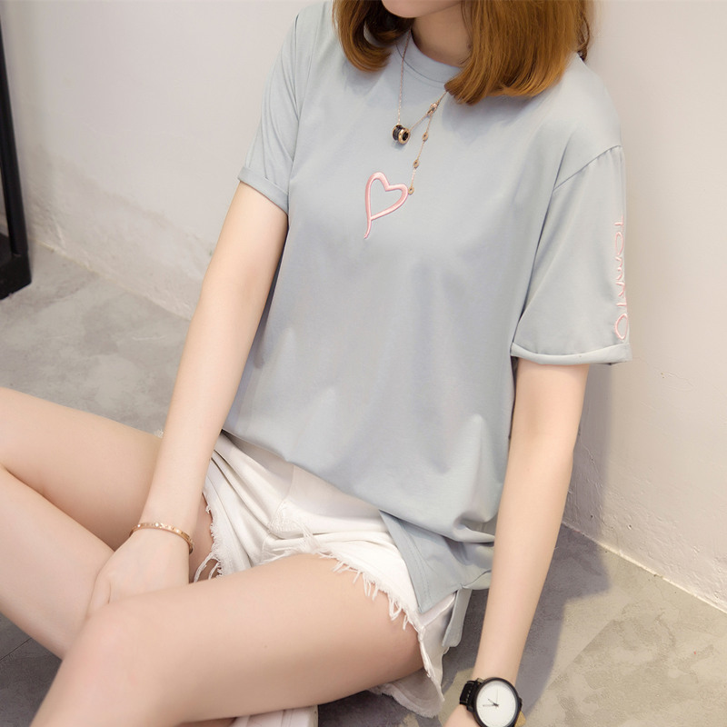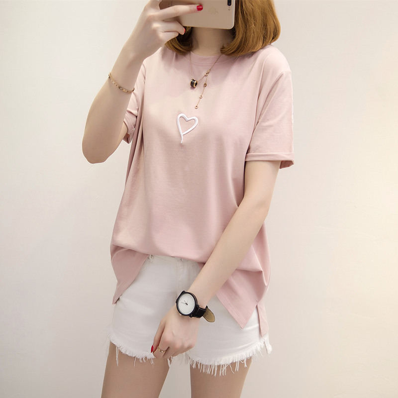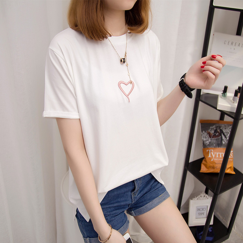夏裝新款女裝上衣寬松白色t恤女短袖刺繡韓版簡約體恤衫百搭