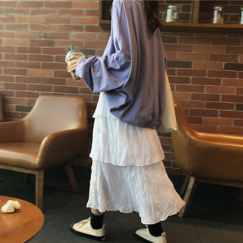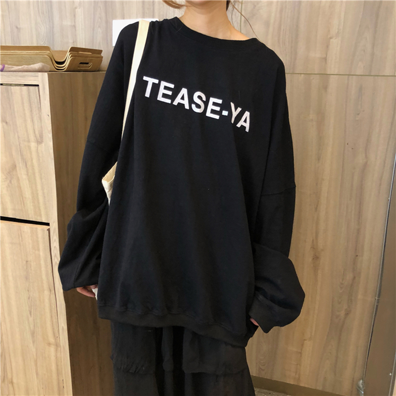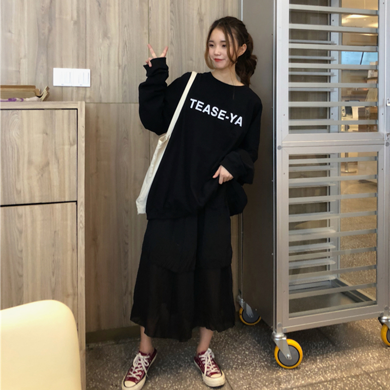 / 女秋裝新款韓版寬松字母套頭衛衣+高腰A字蛋糕裙學生長裙子兩件套