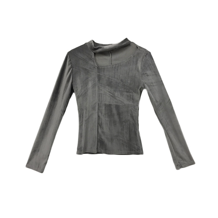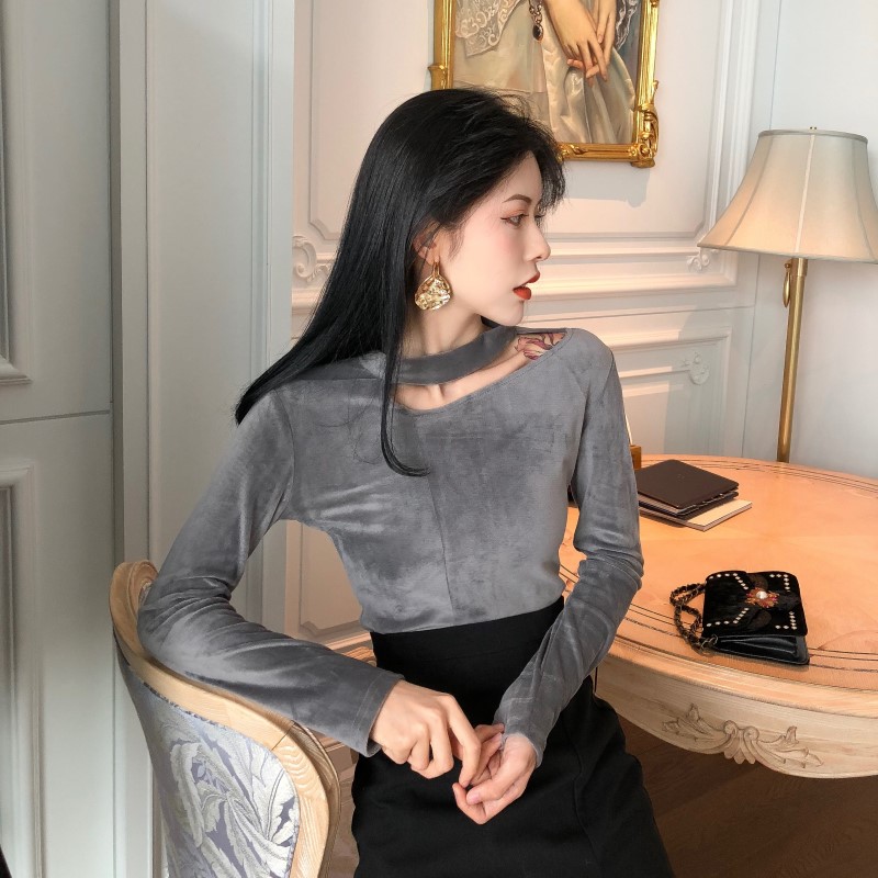 秋裝女2018新款百搭鏤空鎖骨修身長袖打底衫上衣小心機絲絨T恤女