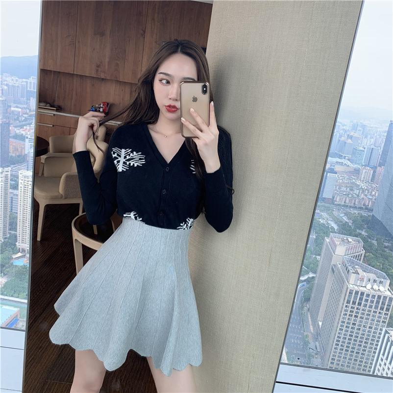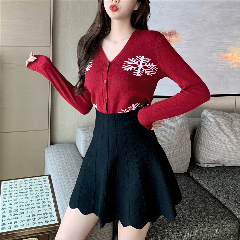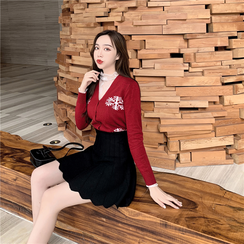 作為一個南方dog , 常年看不到雪 ,見不到雪花, 所以這個雪花針織毛衣 就能帶你體驗一下冬天雪花的感覺啦, 紅色顏色很正很好看哦 黑色簡約又百搭推薦給你們哦 深V領彈力針織毛衫, 擔心太露的mm,我們搭配有透視打底蕾絲衫, 白色富于透視感,親膚百搭打底, 收腰短裙是不規則荷葉邊裙擺, 上有重工條藤!增加縱向層次感。