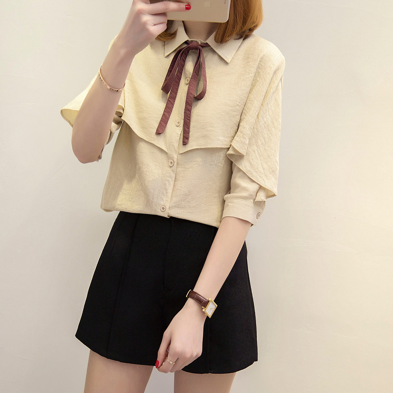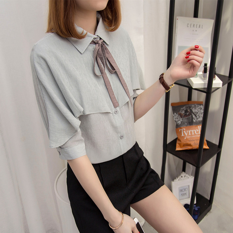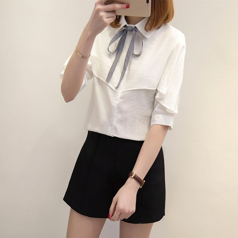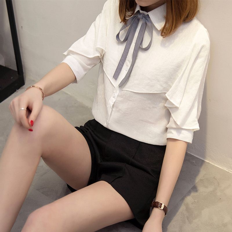 襯衣女長袖春裝新款白色雪紡襯衫女夏半袖寬松韓范休閑新款潮