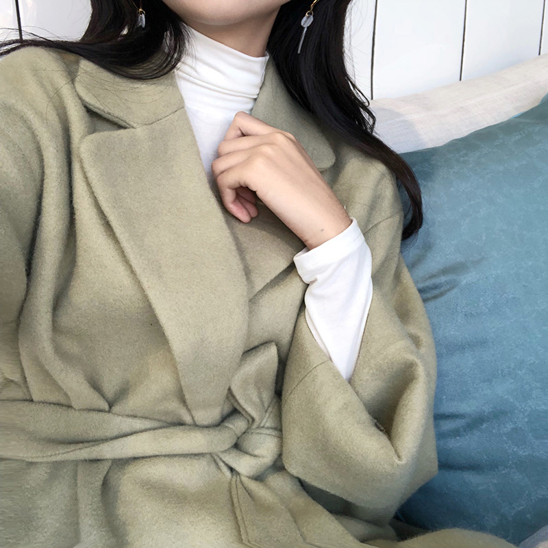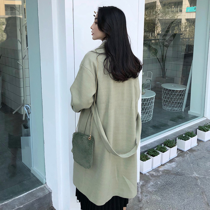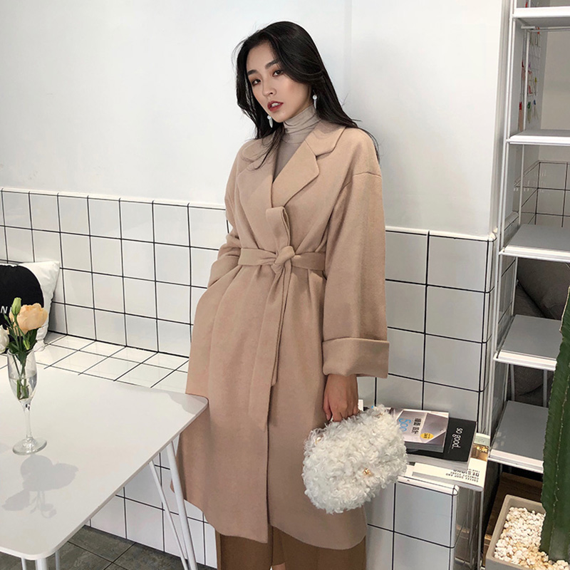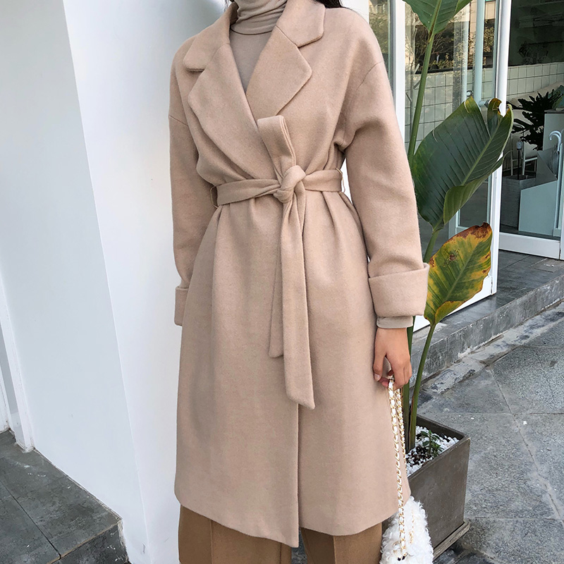 / 氣質純色風衣女中長款收腰呢大衣秋冬裝新款學生寬松長袖毛呢外套