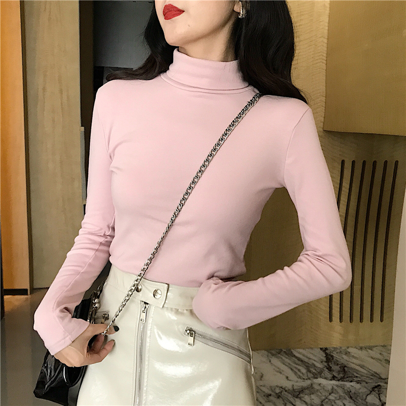 / 高領加絨打底衫女2018秋冬新款內搭上衣緊身純色百搭加厚保暖小衫