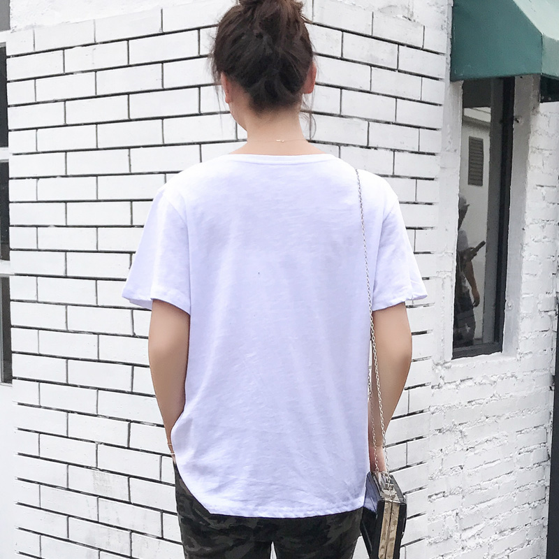 / 春夏新款大碼寬松顯瘦圓領純棉T恤女上衣竹節棉外穿體恤衫