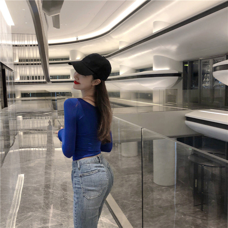 / 2018秋裝韓版新款緊身T恤打底衫時尚百搭復古chic長袖顯瘦上衣女