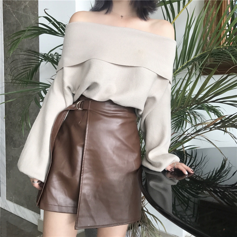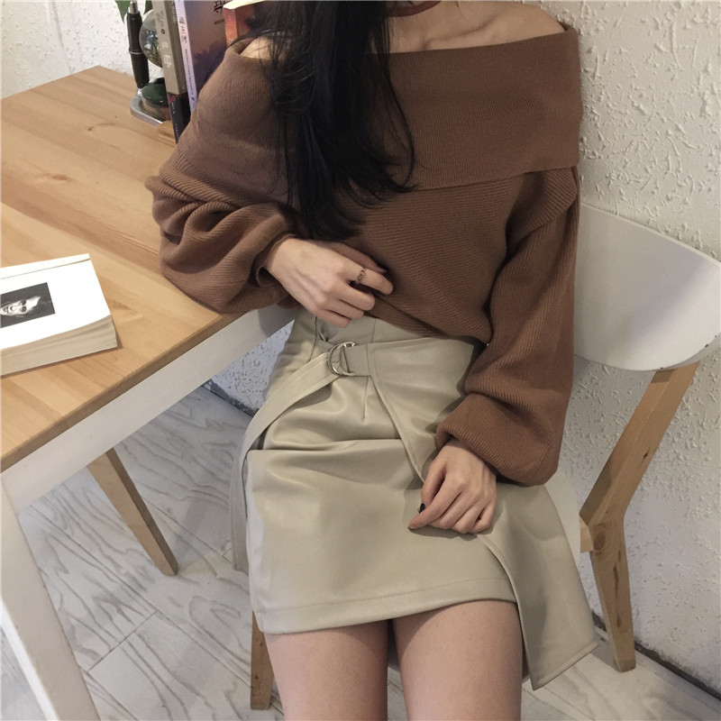 搭配一字領露肩毛衣 上身氣質的