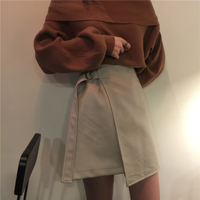 杏色皮裙: