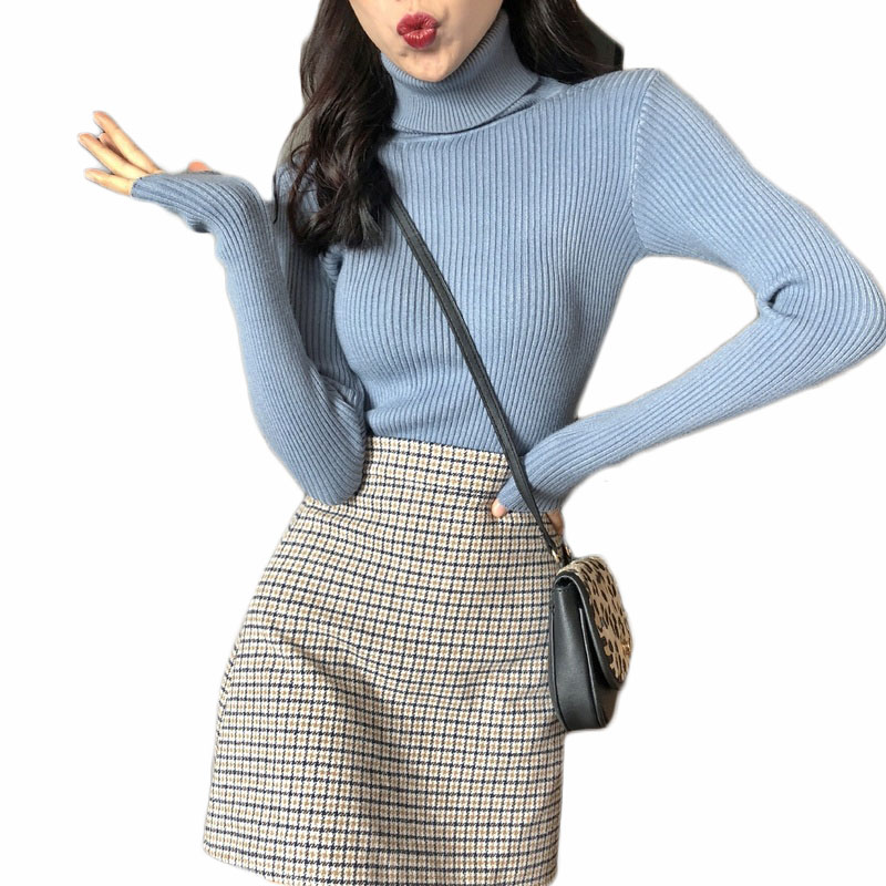 韓版秋冬基礎款慵懶風毛衣女套頭半高領針織打底衫內搭長袖上衣潮
