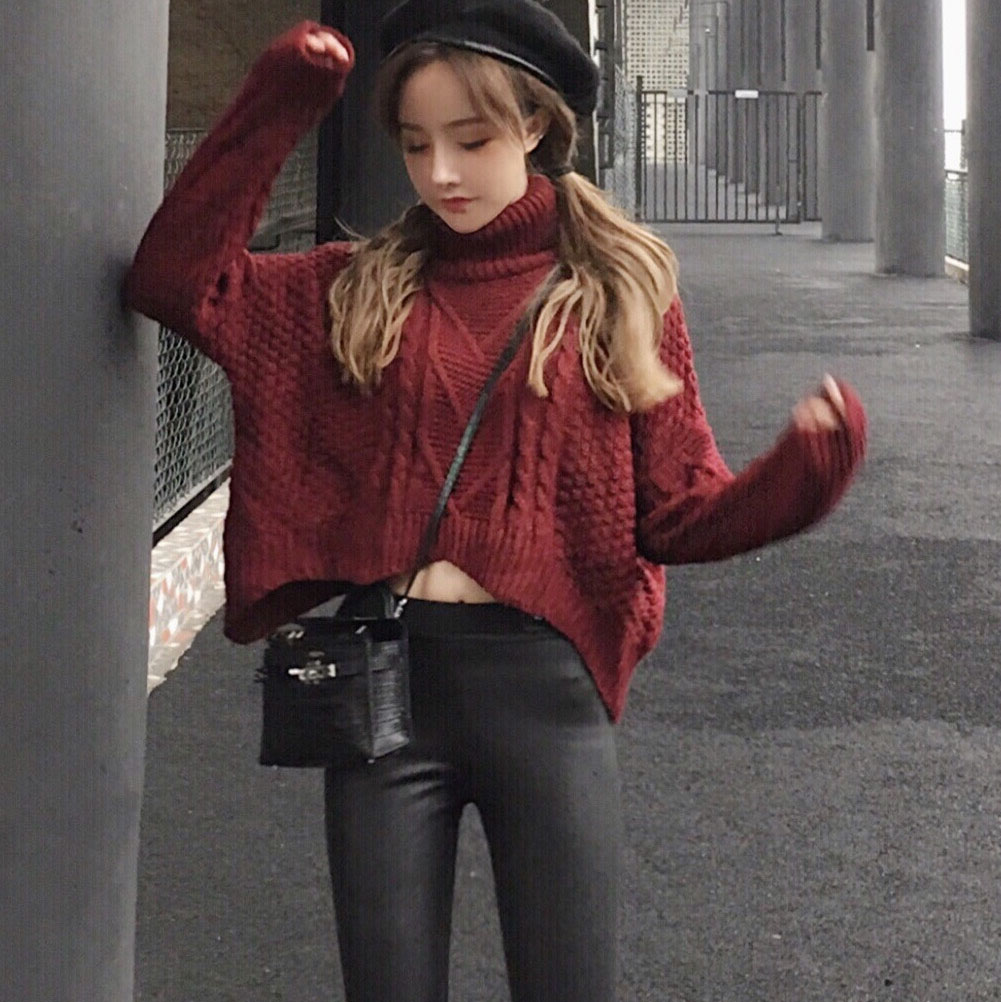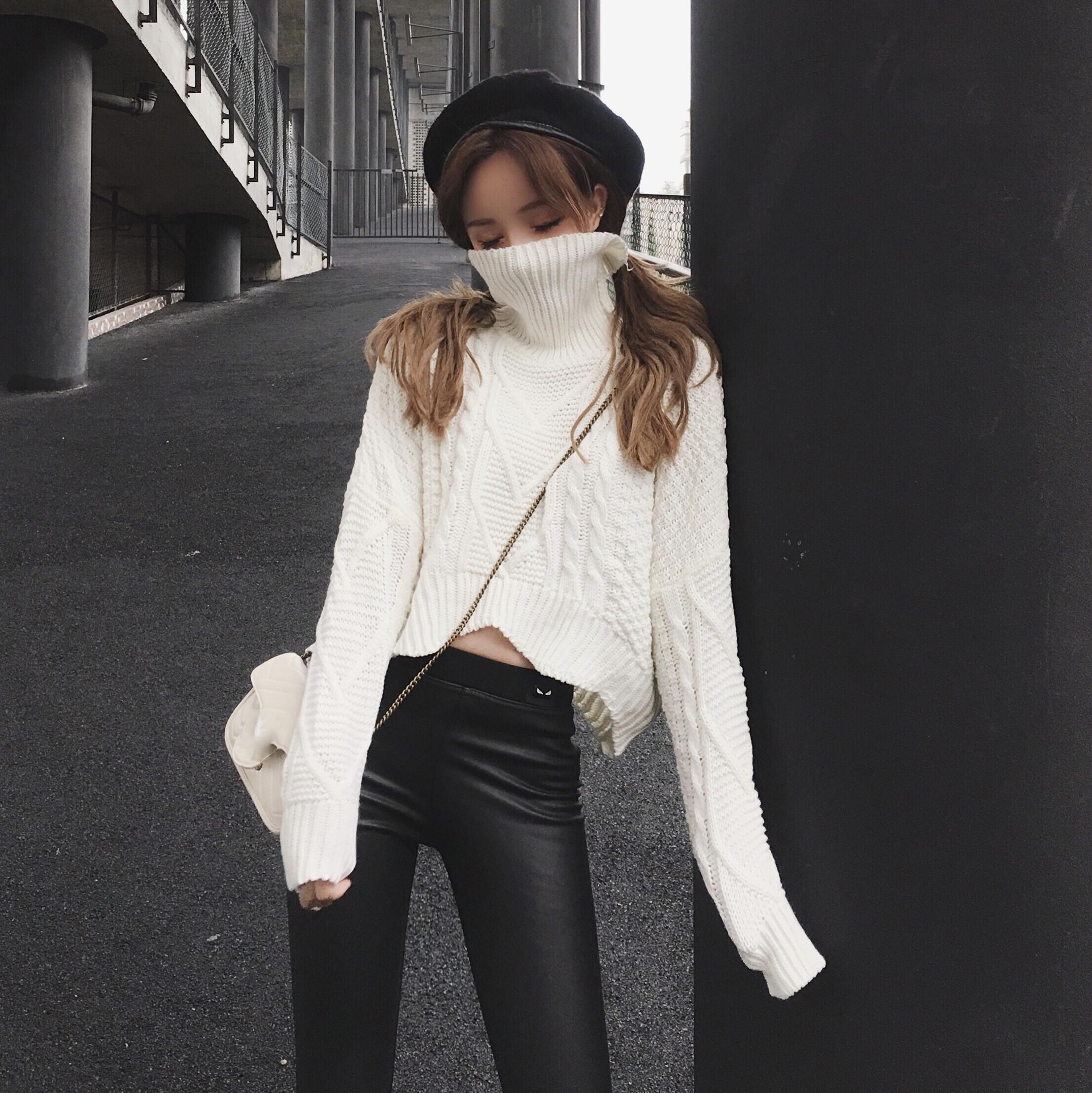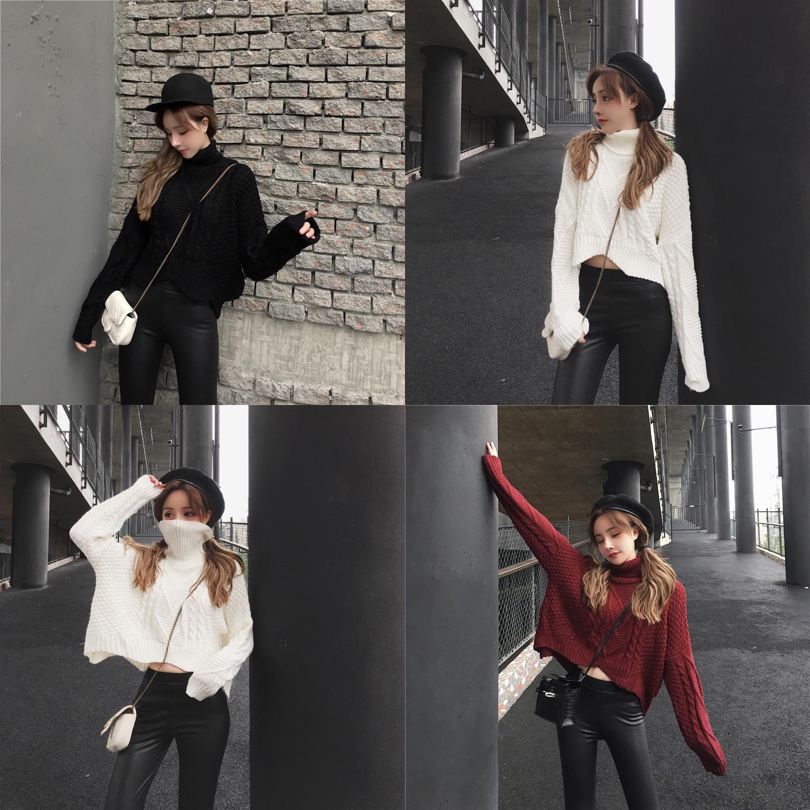 酒紅毛衣|黑色毛衣|米白毛衣|皮褲