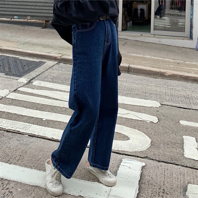 高腰顯瘦復古初戀牛仔長褲女秋冬裝新款學生怪味寬松直筒休閑褲子